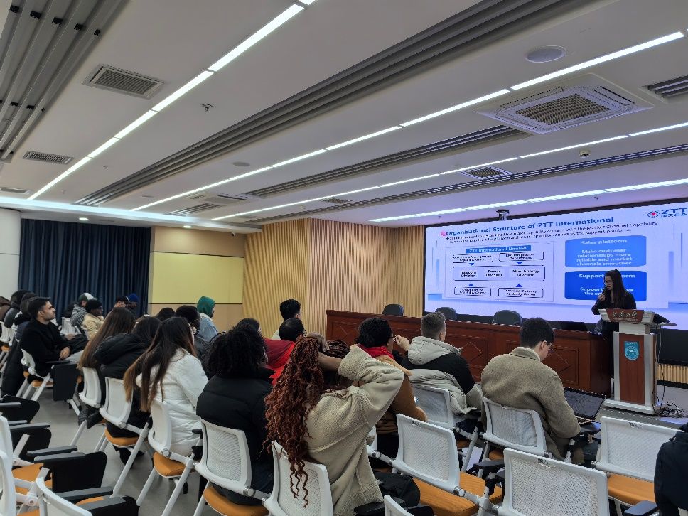 School of Management hosted an engaging and dynamic recruitment fair for its international MBA students on December 11 at 2:00 PM in Room 1501 of the Sanjiang Building. The event aimed to provide career development opportunities for international students and strengthen connections between the university and prominent global companies. The fair witnessed a successful turnout and served as a productive platform for interaction between the students and Zhongtian Technology Group (ZTT), a global leader in the power and telecommunications industry.