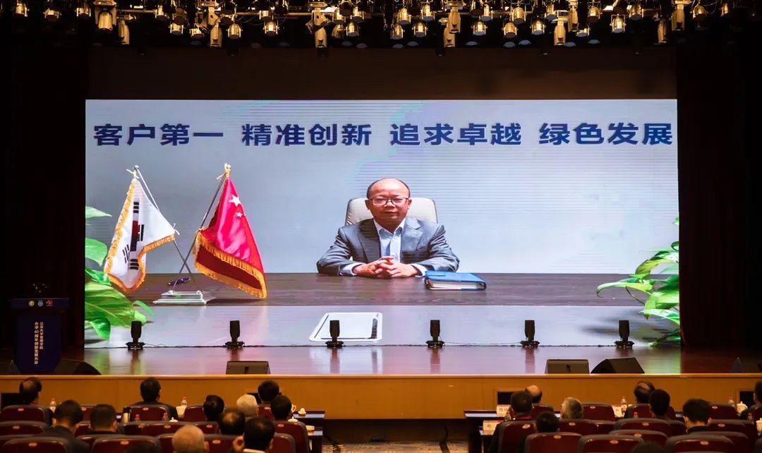 2002届校友曾飞因疫情原因未能前来参会,其合伙人苏州德林泰科技有限公司董事长杨国宏作视频发言。