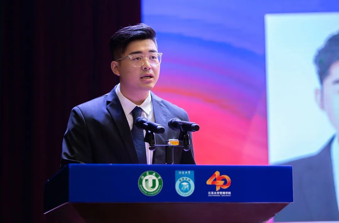 2021级硕士研究生陈志远在发言中说,入学一年来,自己在导师的谆谆教诲、师兄师姐们的照顾和帮助下,遨游在科研海洋,汲取前沿知识,培养学术素养,深切感悟到学院的争先创优氛围和学术科研精神。他将以学院办学40周年为新起点,认真学习、努力钻研,为管理事业高质量发展贡献青春力量。