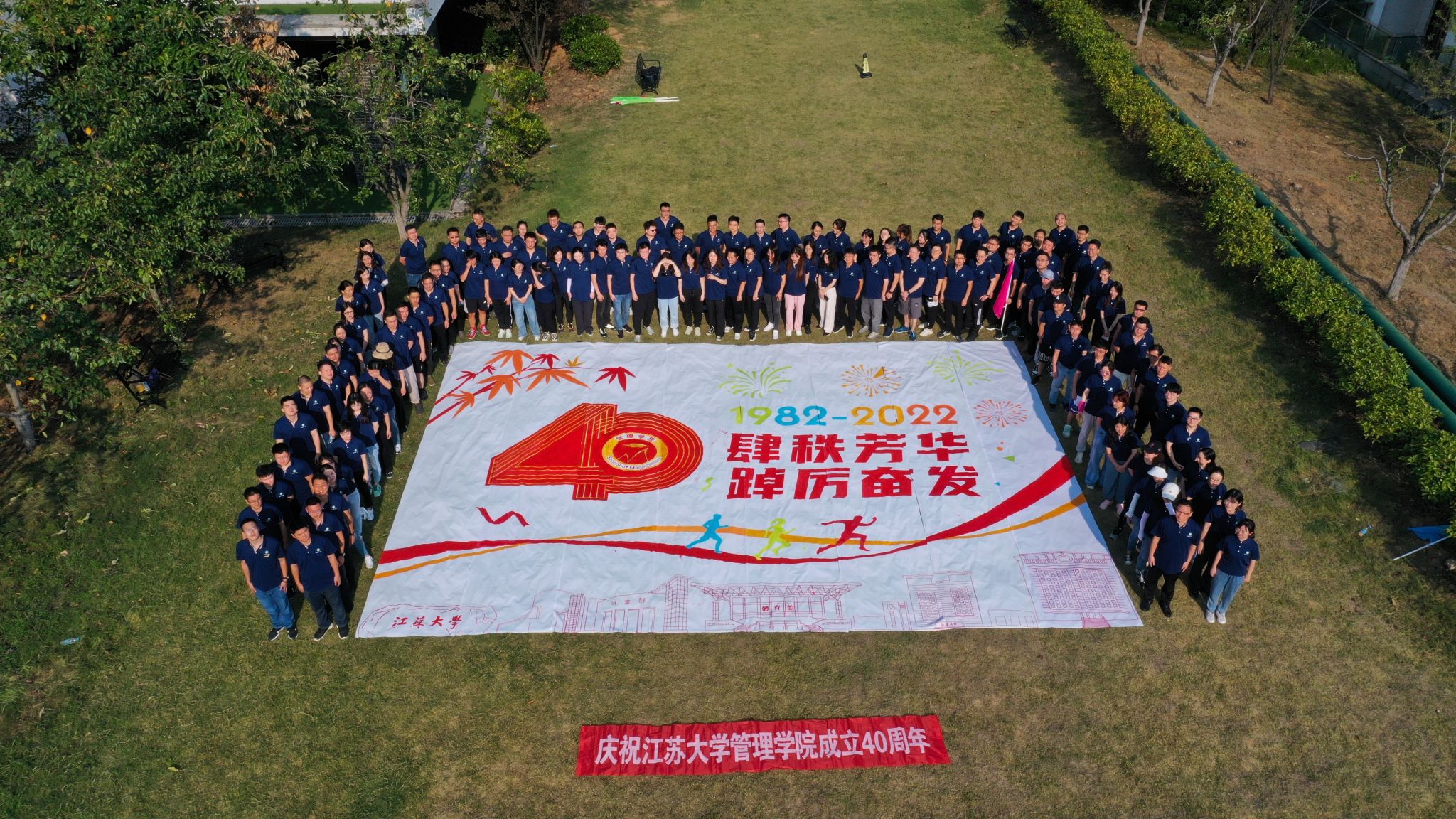 肆秩芳华,踔厉奋发”,今年适逢p站视频 建院40周年,参加拓展训练的2022级MBA学员通力协作完成巨幅彩画,祝福学院发展,激励自己前行。